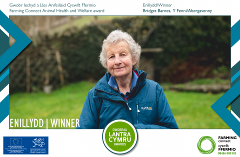 Mae Bridget Barnes yn ffermwr defaid a bîff ac mae wedi mynychu chwe gweithdy iechyd a lles anifeiliaid Cyswllt Ffermio, ac mae'n gweithredu popeth y mae hi wedi'i ddysgu. Bellach, mae'n adnabod arwyddion clinigol clefydau ac mae'n gweithredu mesurau trin a rheoli priodol. Roedd ymrwymiad a brwdfrydedd Bridget tuag at ehangu ei sgiliau a'i phenderfyniad i gyflawni'r safonau uchaf o ran iechyd a lles anifeiliaid wedi gwneud argraff ar y panel beirniadu. Bellach, mae'n rhan o gynlluniau iechyd gwartheg amrywiol ac mae'n gallu gweld manteision gwneud newidiadau bychain ar y fferm, er mwyn lleihau risg lledaenu clefydau a chael problemau iechyd anifeiliaid yn cael effaith negyddol ar y busnes.