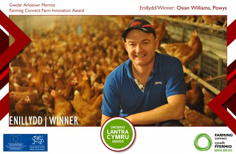 Mae Osian yn ffermwr modern a blaengar sydd wedi llwyddo i gynnwys technegau newydd ac arferion gorau yn y fenter ddofednod ac ochr cynhyrchu ynni adnewyddadwy'r busnes. Dywedodd y panel beirniadu bod Osian wedi profi ei fod yn ffermwr amryddawn a blaengar sy'n teimlo'n angerddol ynghylch sicrhau perfformiad uchel. Mae ei barodrwydd i dreialu a gweithredu systemau neu gynhyrchion newydd, sydd wedi ei alluogi i ddod yn fwy effeithlon a chynaliadwy, yn ei wneud yn enillydd teilwng iawn y wobr hon.