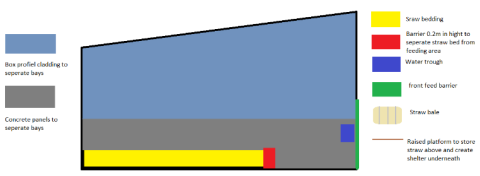 In August and September 2023, the existing shed was cleared and replaced with a new, purpose-built design incorporating five bays, constructed with veterinary input, as shown in the below diagrams and photos.