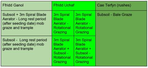 The mechanical and grazing strategies across the plots within the three fields is shown below: