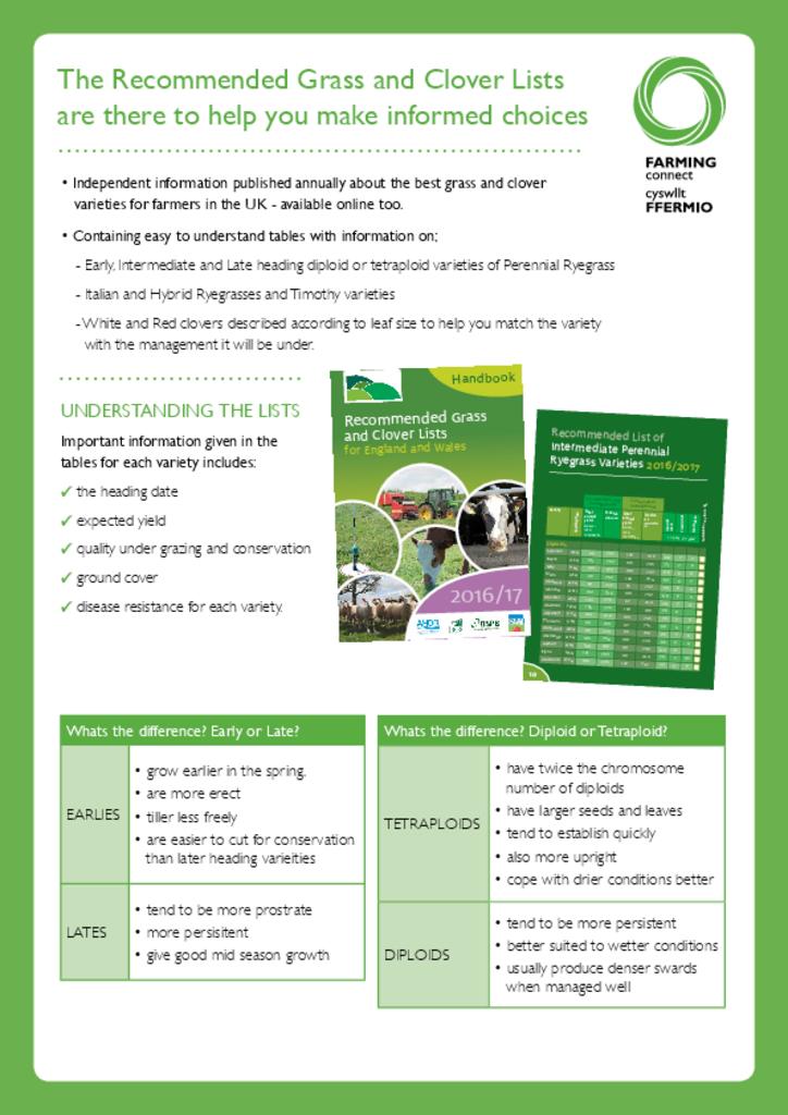 07/04/2017: The Recommended Grass and Clover Lists are there to help you make informed choices Type Factsheets Theme Land cff_grasscloverlistseng.pdf [.PDF, 499.52 KB] Related News and Events 8 September 2025 Livestock Genetic Improvement To Reduce Ghg Emissions Type: Factsheets Key Sector: Arable, Beef, Dairy, Mixed, Poultry, Sheep Theme: Business, Livestock 4 September 2025 Thinking About Regenerative Farming Type: Factsheets Key Sector: Arable, Beef, Dairy, Mixed, Poultry, Sheep Theme: Business, Land, Livestock Key Specialism: Regenerative Farming 4 September 2025 Plant Passports Type: Factsheets Key Sector: Horticulture Theme: Land More News and Events