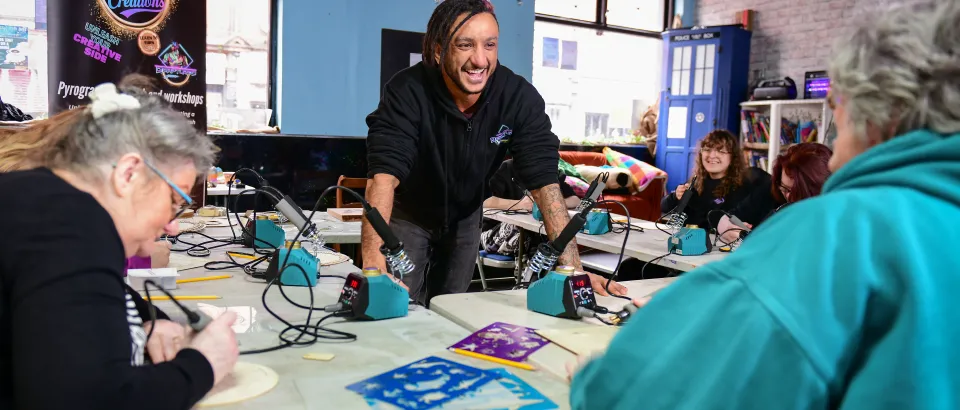 Shahidul helped Declan secure a Barriers to Start Up grant. This, combined with a Changing Lives grant he received from the charity Crisis, enabled an investment in tools that would allow him to run pyrography workshops.